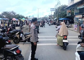 Aceh Utara - Personel Polsek Syamtalira Bayu melaksanakan kegiatan pengamanan dan pengaturan arus lalu lintas menjelang waktu berbuka puasa Ramadhan...