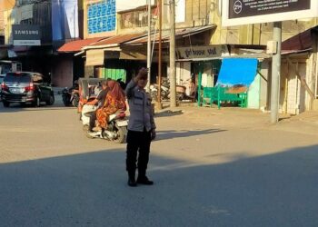 LHOKSEUMAWE - Personel Polsek Banda Sakti melaksanakan kegiatan pengamanan dan pengaturan arus lalu lintas di sejumlah titik rawan kemacetan di...