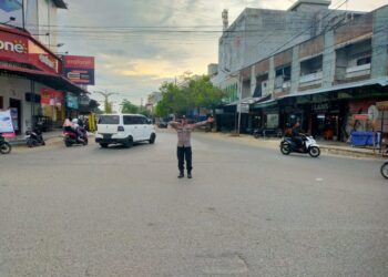 Lhokseumawe - Personel Polsek Banda Sakti, Polres Lhokseumawe melaksanakan kegiatan pengamanan dan pengaturan arus lalu lintas di sejumlah titik rawan...