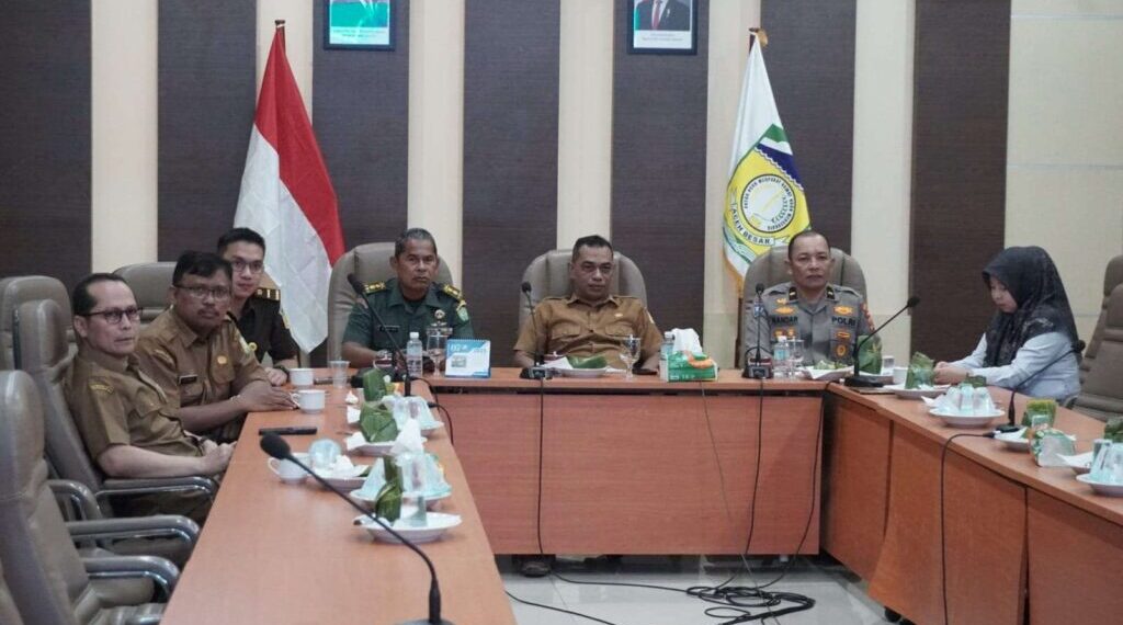 Aceh Besar : Plh. Asisten II Bidang Perekonomian dan Pembangunan Sekdakab Aceh Besar Darwan Asrizal, SE. MT, mengikuti Rapat Koordinasi (Rakor) Pengendalian Inflasi Daerah yang dirangkaikan dengan pembahasan Evaluasi Dukungan Pemerintah Daerah terhadap Program 3 Juta Rumah, di Kota Jantho, Selasa (22/07/2025).