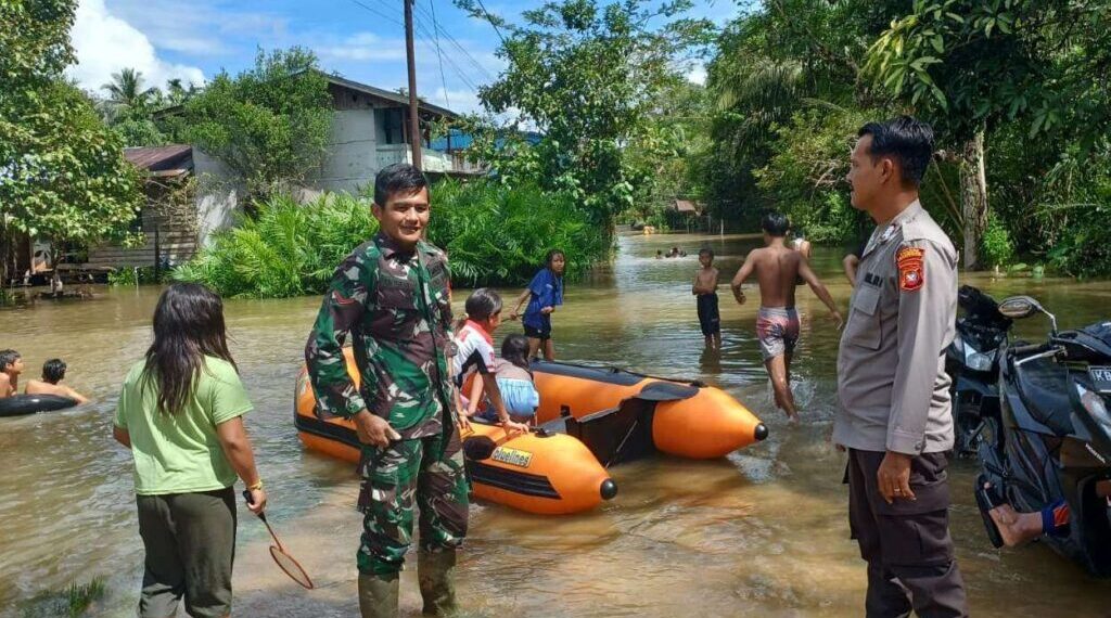 ETIKONG-Banjir masih menggenangi sejumlah titik di wilayah Kecamatan Parindu, Kabupaten Sanggau. Kapolsek Parindu, Iptu Trisna Mauludi menyampaikan, genangan air masih melanda beberapa wilayah akibat tingginya curah hujan beberapa hari terakhir.