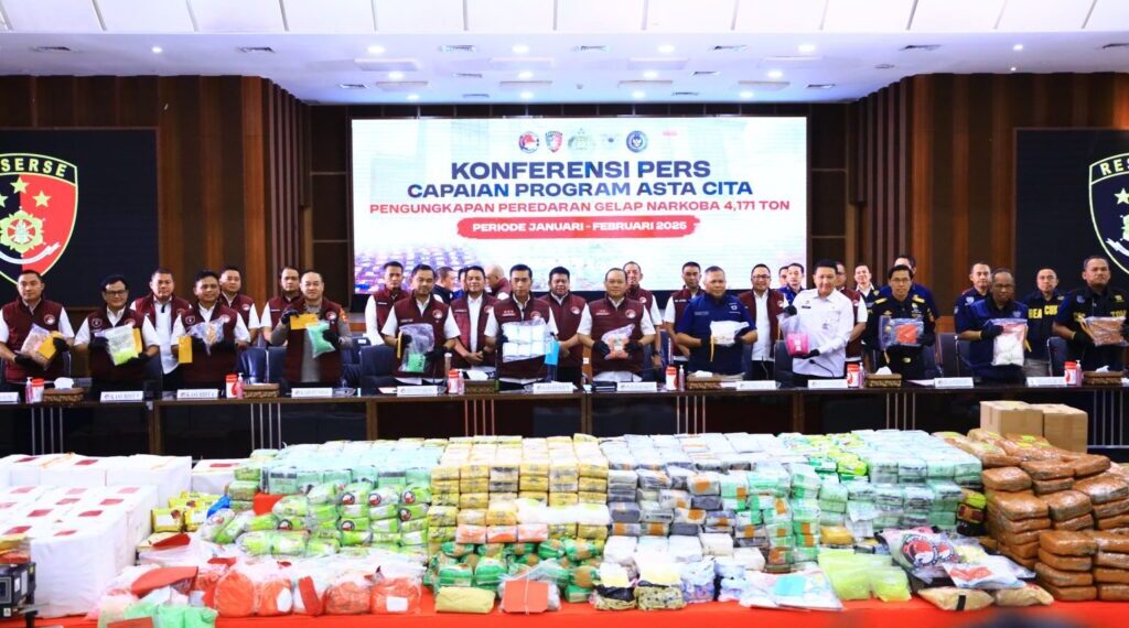 Jakarta – Direktorat Tindak Pidana Narkoba Bareskrim Polri bersama jajaran kewilayahan berhasil mengungkap 6.881 kasus tindak pidana narkotika sepanjang periode Januari hingga 27 Februari 2025. Dalam operasi ini, sebanyak 9.586 tersangka diamankan dengan total barang bukti narkotika mencapai 4,171 ton, termasuk sabu, ekstasi, ganja, kokain, dan tembakau sintetis.