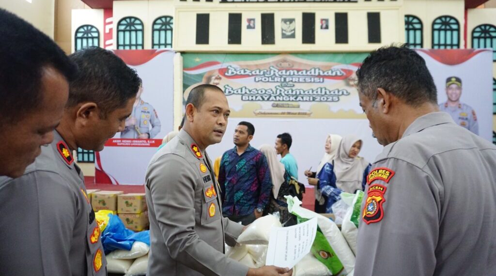 Lhokseumawe – Antusiasme masyarakat begitu tinggi dalam kegiatan Bazar Ramadhan Polri Presisi yang digelar Polres Lhokseumawe di gedung serbaguna Wirasatya Mapolres Lhokseumawe. Dalam waktu singkat, 300 paket sembako yang disediakan langsung habis dibeli oleh warga yang hadir di lingkungan Mapolres, Rabu (20/3/2025) sore.
