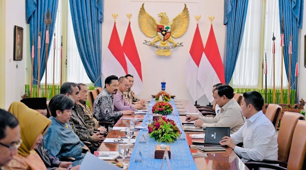 Presiden Prabowo Subianto menerima pimpinan Majelis Permusyawaratan Rakyat (MPR) di Istana Merdeka, Jakarta, Rabu (23/07/2025). Pertemuan ini merupakan bagian dari konsultasi kelembagaan menjelang penyelenggaraan Sidang Tahunan MPR dalam rangka peringatan Hari Kemerdekaan Republik Indonesia.