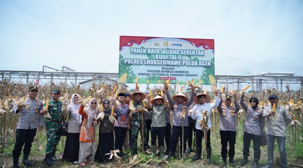 Lhokseumawe – Dalam semangat mendukung program ketahanan pangan nasional, Kapolres Lhokseumawe AKBP Dr. Ahzan, S.H., S.I.K., M.S.M., M.H melaksanakan Panen Raya Jagung Serentak Kuartal II bersama Wali Kota Lhokseumawe Dr. Sayuti Abubakar, S.H., M.H dan Dandim 0103/Aceh Utara Letkol Kav Makhyar, S.T., M.M., M.H.I, Kamis (5/6/2025).
