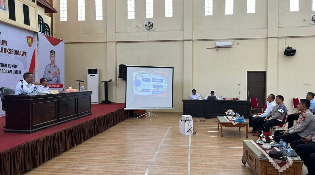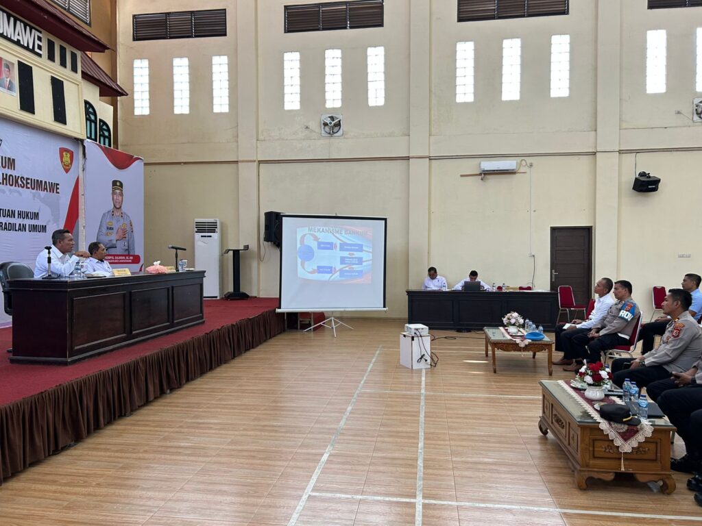 Lhokseumawe – Dalam rangka meningkatkan pemahaman hukum bagi anggota Polri, Bidang Hukum (Bidkum) Polda Aceh menggelar kegiatan penyuluhan hukum di Gedung Wira Satya Polres Lhokseumawe, Rabu (28/5/2025) pagi.
