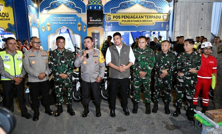 MEDAN – Gubernur Sumatera Utara (Sumut) Muhammad Bobby Afif Nasution bersama Kapolda Sumut Irjen Pol Whisnu Hermawan Februanto dan Pangdam I Bukit Barisan Mayjen TNI AD Rio Firdianto melaksanakan Patroli Pemantauan Wilayah dan Peninjauan Pos Pengamanan, pada malam takbiran perayaan Idulfitri 1446 H.