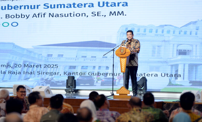 MEDAN – Gubernur Sumatera Utara (Sumut) Bobby Nasution menargetkan pertumbuhan ekonomi rata-rata Sumut dari 5,03% tahun 2024 menjadi 6,08% pada tahun 2029. Hal tersebut diungkapkannya pada Konsultasi Publik Dalam Rangka Penyusunan Dokumen RPJMD 2025-2029 & RKPD 2026 Sumut di Aula Raja Inal Siregar, Kantor Gubernur, Jalan Diponegoro, Medan, Kamis (20/3/2025).