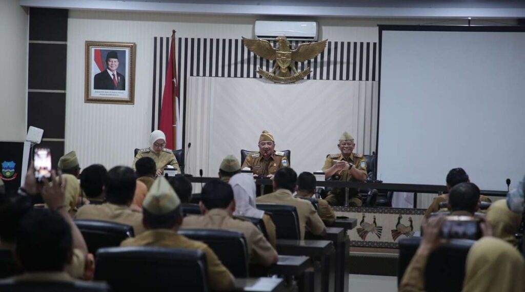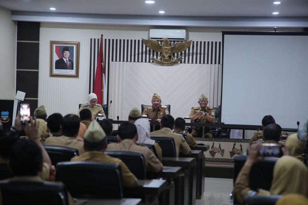 KAB. GARUT – Bupati Garut, Abdusy Syakur Amin memberikan pengarahan dan koordinasi setiap lingkup Satuan Kerja Perangkat Daerah (SKPD), Pejabat Pimpinan Tinggi Pratama (PPTP), Kepala Bagian (Kabag), dan Camat se-Kabupaten Garut, Senin (3/3/2025), di Ruang Rapat Sekretariat Daerah Kabupaten Garut.