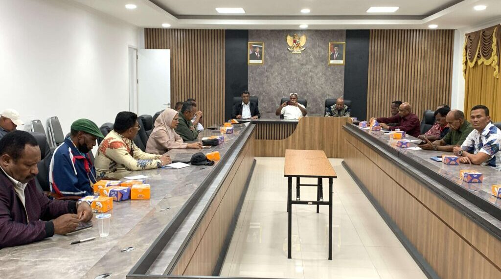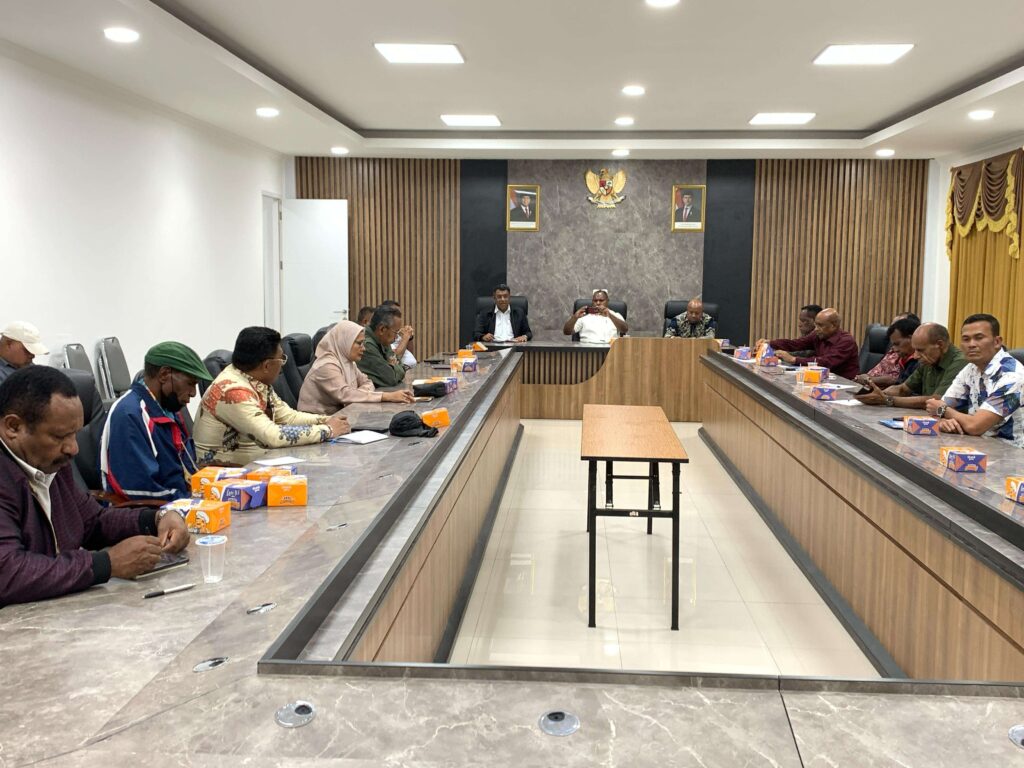 Wamena : Pasca kejadian saling serang pada pelaksanaan Syukuran Pelantikan Bupati dan Wakil Bupati Jayawijaya Atenius Murib dan Ronny Elopere sabtu ( 15-03-2025) Bupati Jayawijaya memimpin rapat koordinasi di ruang rapat kantor Bupati Jayawijaya bersama Forkopimda, Pimpinan OPD, MRP Papua Pegunungan serta Tokoh masyarakat adat di Kabupaten Jayawijaya pada minggu (16-03-2025)