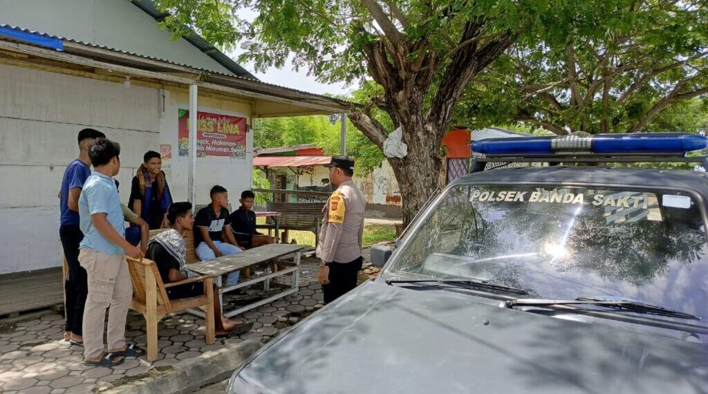Lhokseumawe – Guna menjaga keamanan dan ketertiban masyarakat (Guantibmas), Polsek Banda Sakti melaksanakan patroli antisipasi kenakalan remaja menjelang Sholat Jum’at di kawasan Waduk Pusong, Kota Lhokseumawe, Jumat siang (29/8/2025).