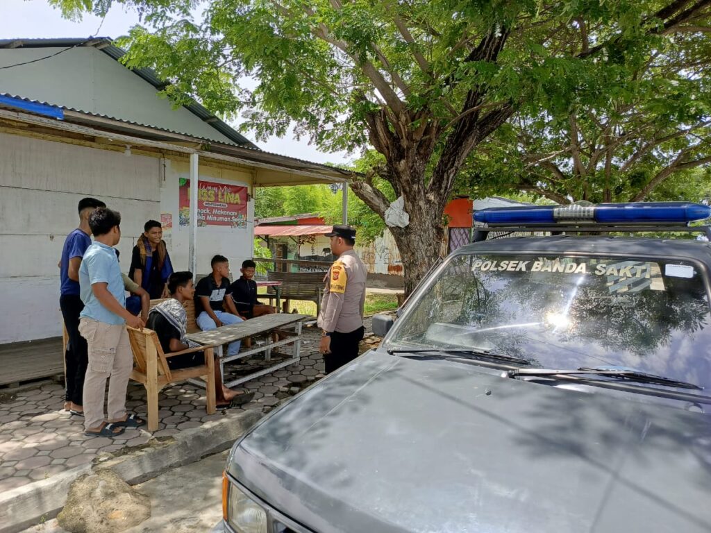 Lhokseumawe – Guna menjaga keamanan dan ketertiban masyarakat (Guantibmas), Polsek Banda Sakti melaksanakan patroli antisipasi kenakalan remaja menjelang Sholat Jum’at di kawasan Waduk Pusong, Kota Lhokseumawe, Jumat siang (29/8/2025).