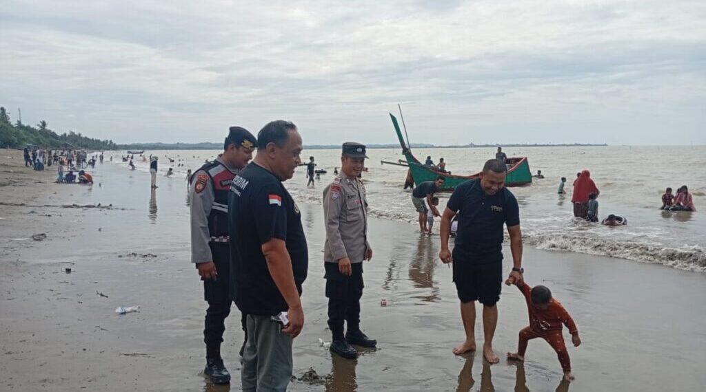 Aceh Utara – Personel Polres Lhokseumawe melaksanakan kegiatan pengamanan dan pengawasan untuk memastikan keamanan dan kenyamanan masyarakat yang berwisata di lokasi wisata Pantai Lancok, Desa Lancok, Kecamatan Syamtalira Bayu, Kabupaten Aceh Utara, Minggu (8/6/2025).
