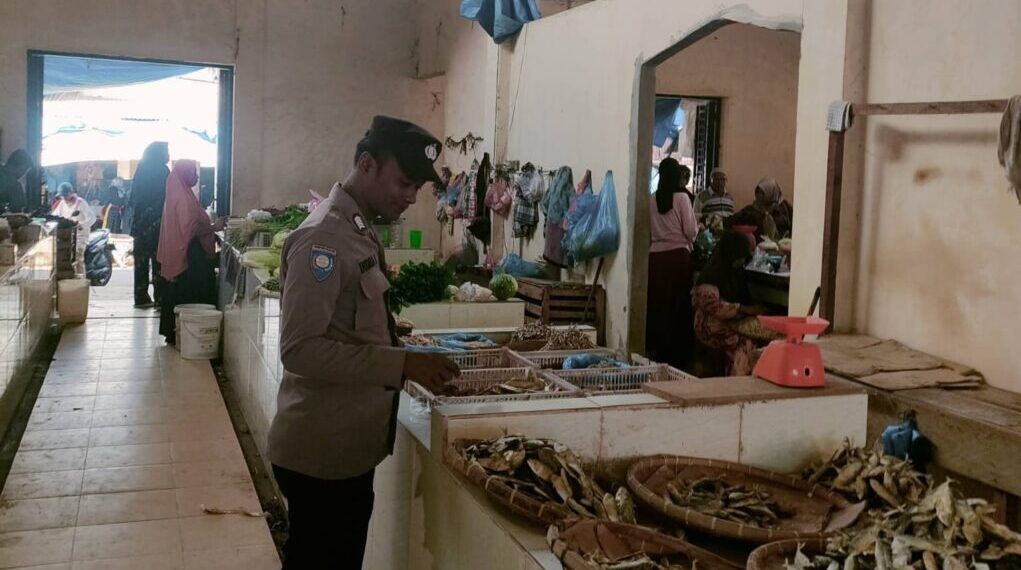 Patroli dialogis tersebut dilakukan oleh Aipda Indra Irawan dengan menyambangi para pedagang dan pengunjung pasar untuk memantau situasi kamtibmas sekaligus menyampaikan imbauan agar masyarakat tetap menjaga ketertiban dan keamanan lingkungan.