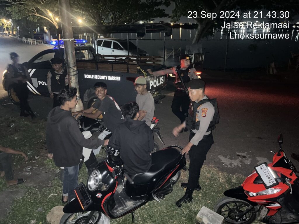 LHOKSEUMAWE, – Sat Samapta Perintis, Polres Lhokseumawe Polda Aceh meningkatkan patroli di berbagai wilayah di kota Lhokseumawe, untuk menciptakan situasi kondusif dan mencegah potensi gangguan keamanan. Langkah ini diambil sebagai respons terhadap mencegah terjadinya guantibmas di Wilayah Kota Lhokseumawe, Senin, 23/09/-2024 malam.