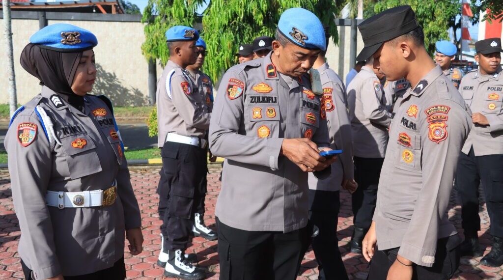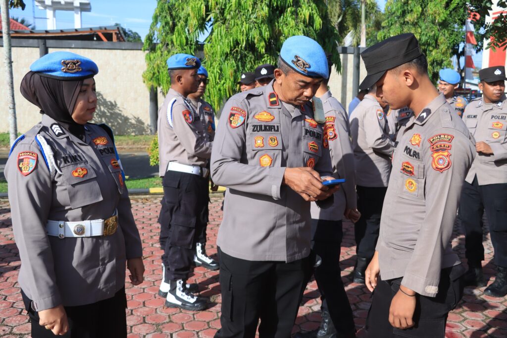ACEH UTARA – Kapolres Aceh Utara AKBP Trie Aprianto, S.H., M.H., didampingi Propam Polres Aceh Utara melkukan pengecekan secara langsung handphone personel. Hal itu dilakukan usai pelaksanaan apel pagi di lapangan Tribrata Mapolres setempat, Senin, 21 Juli 2025.
