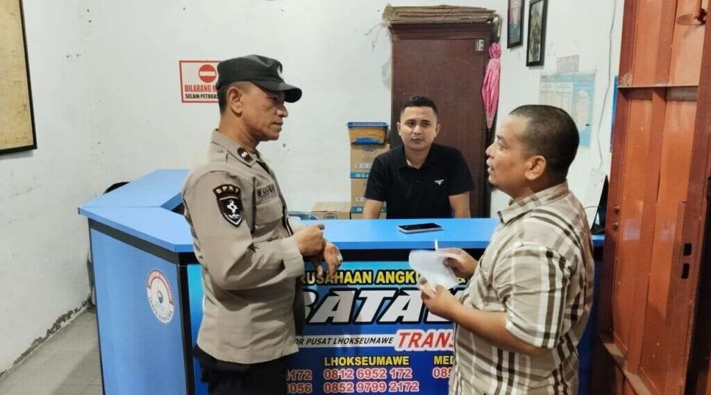 Lhokseumawe – Personel Polsek Banda Sakti melaksanakan patroli dialogis di Terminal Mobil Penumpang di Jalan Pase, Kecamatan Banda Sakti, Kota Lhokseumawe, Kamis (27/3/2025) pagi. Kegiatan ini bertujuan untuk mencegah aksi premanisme serta memastikan keamanan dan ketertiban masyarakat (kamtibmas) di lingkungan terminal.
