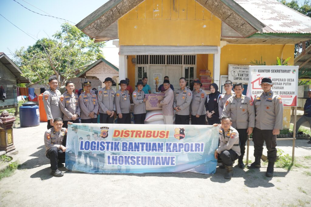 Aceh Utara – Di suasana bulan suci Ramadan yang penuh berkah, jajaran Kepolisian Negara Republik Indonesia kembali menunjukkan kepeduliannya kepada masyarakat. Kapolres Lhokseumawe, Ahzan, menyalurkan langsung bantuan logistik dari Kapolri kepada para pengungsi korban banjir di Desa Bungkah, Kecamatan Muara Batu, Kabupaten Aceh Utara, Minggu (22/2/2026) sekira pukul 11.40 WIB.