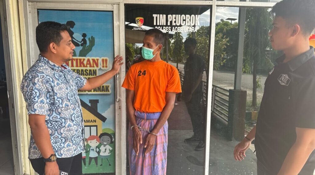 ACEH UTARA – Unit PPA Sat Reskrim Polres Aceh Utara mengamankan seorang pria berinisial M (44), warga Kecamatan Dewantara, Aceh Utara atas dugaan persetubuhan terhadap anak tirinya yang masih berusia 16 tahun. Pelaku diamankan oleh personel Polsek Langkahan dengan bantuan masyarakat pada 11 April 2025 di kawasan Gampong Lubok Pusaka, Kecamatan Langkahan, Aceh Utara.