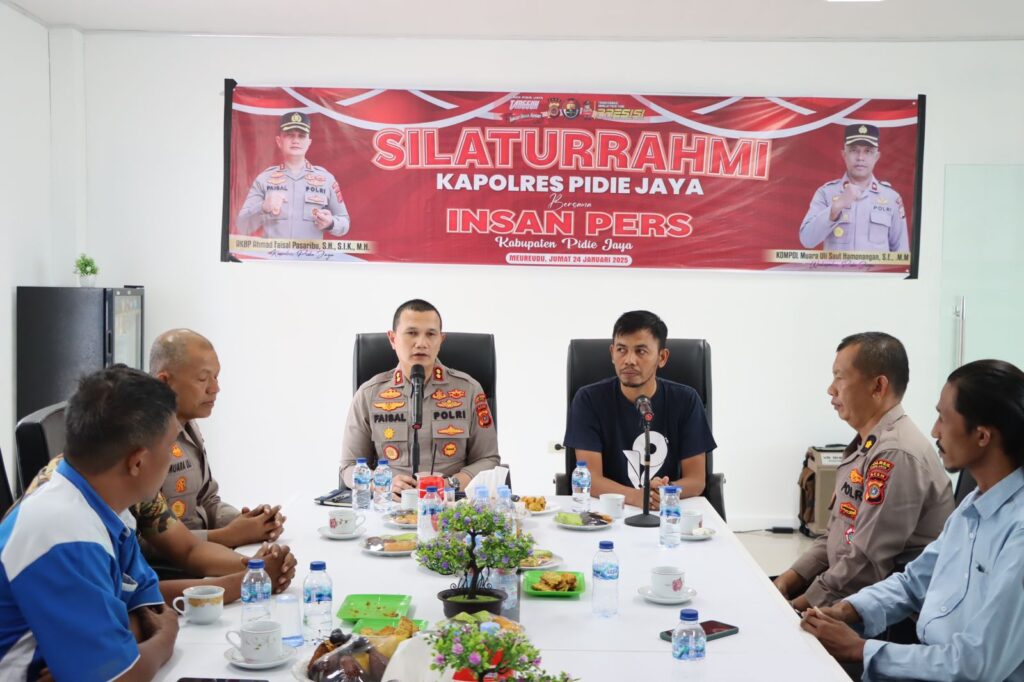 *Pidie Jaya* – Polres Pidie Jaya mengadakan forum diskusi Jum’at Curhat pada 24 Januari 2025 di Aula Satpas Polres Pidie Jaya, Meureudu, untuk mempererat hubungan antara Polri dan media.