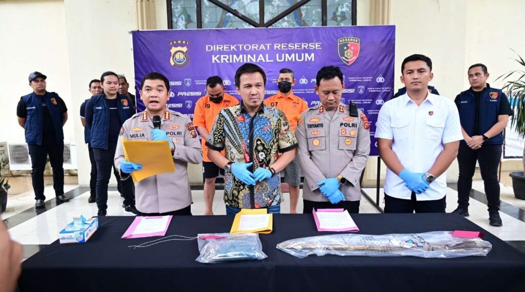 Jambi : Direktorat Reserse Kriminal Umum (Ditreskrimum) Polda Jambi mengadakan konferensi pers di Gedung B Polda Jambi pada Jumat, (2/5/2025)