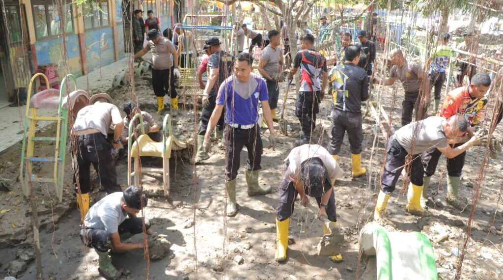 “Sekolah adalah harapan masa depan anak-anak kita. Karena itu, meskipun harus bekerja keras dan berjibaku dengan lumpur selama dua hari, kami pastikan sekolah ini bisa segera digunakan kembali,” ujar Kapolres di sela kegiatan.