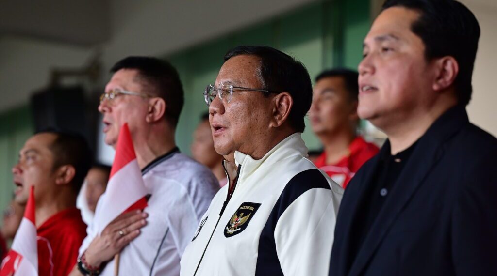 jakarta- Presiden Prabowo Subianto menyaksikan secara langsung pertandingan antara tim nasional sepak bola Indonesia melawan Bahrain dalam laga lanjutan Kualifikasi Piala Dunia 2026 zona Asia yang berlangsung di Stadion Utama Gelora Bung Karno (GBK), Jakarta, Selasa (25/03/2025). Kehadiran Presiden di GBK disambut meriah oleh para suporter yang memenuhi tribun untuk memberikan dukungan penuh kepada timnas.