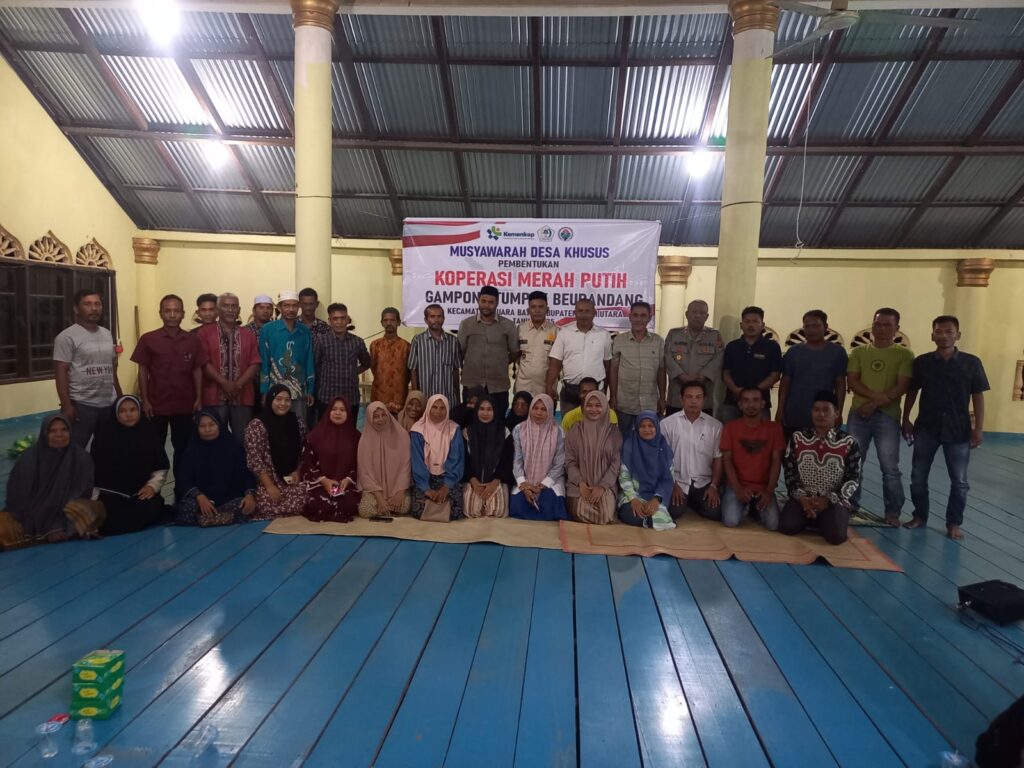 Aceh Utara – Kapolsek Muara Batu AKP Ali Akbar menunjukkan komitmennya dalam mendukung program pemerintah dengan menghadiri rapat pembentukan Koperasi Merah Putih di Gampong Teumpok Beurandang, Kecamatan Muara Batu, Kabupaten Aceh Utara, Kamis (29/5/2025) malam.