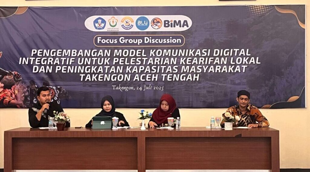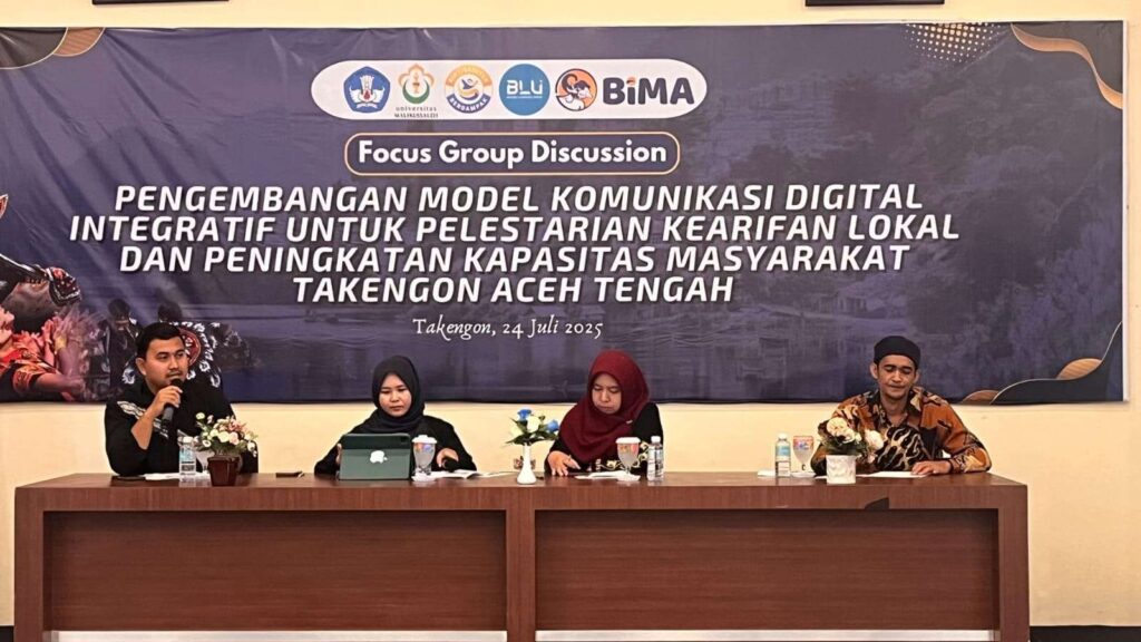 Takengon: Budaya Gayo kini berada di persimpangan antara tantangan pelestarian dan peluang kebangkitan. Isu ini mencuat dalam Focus Group Discussion (FGD) Pengembangan Model Komunikasi Digital Integratif Untuk Pelestarian Kearifan Lokal Dan Peningkatan Kapasitas Masyarakat Takengon Aceh Tengah yang digelar Tim Peneliti melalui skema Penelitian Fundamental Reguler BIMA KEMDIKTISAINTEK 2025, Kamis (24/7/2025), di Takengon.
