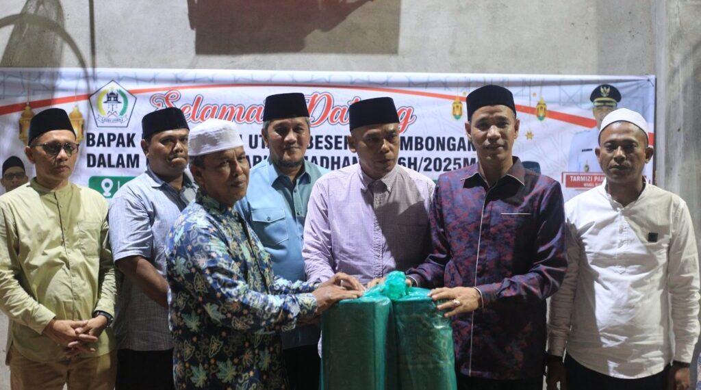 Aceh Utara – Dalam rangka Safari Ramadhan, Wakil Bupati Aceh Utara, Tarmizi, S.I.Kom, didampingi oleh Asisten II, Dayan Albar, S.Sos., M.A.P., dan Asisten III, Fauzan, S.Sos., M.A.P., menyerahkan santunan kepada anak yatim serta bantuan sajadah untuk Masjid Sirajul Mukhilisin, Gampong Punti SB, Kecamatan Tanah Luas, pada Minggu (9/3/2025), atau tepat pada 10 Ramadan.