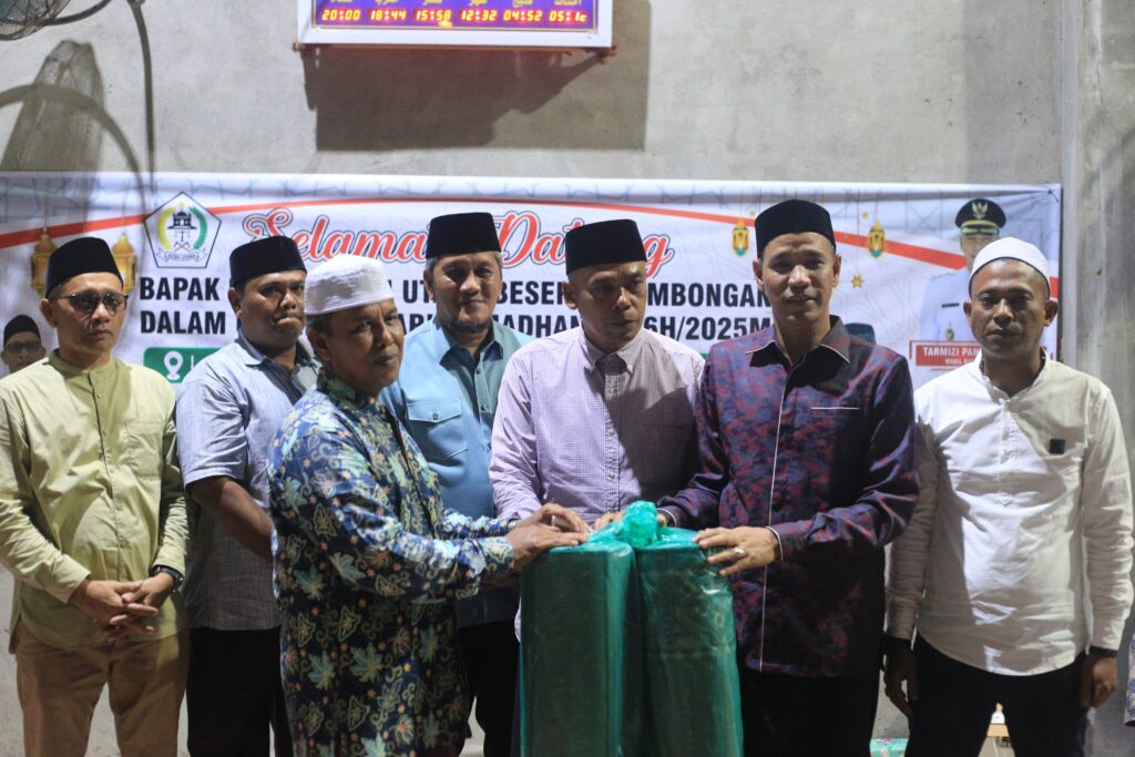 Aceh Utara – Dalam rangka Safari Ramadhan, Wakil Bupati Aceh Utara, Tarmizi, S.I.Kom, didampingi oleh Asisten II, Dayan Albar, S.Sos., M.A.P., dan Asisten III, Fauzan, S.Sos., M.A.P., menyerahkan santunan kepada anak yatim serta bantuan sajadah untuk Masjid Sirajul Mukhilisin, Gampong Punti SB, Kecamatan Tanah Luas, pada Minggu (9/3/2025), atau tepat pada 10 Ramadan.