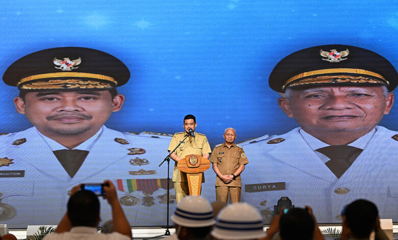 “Kita ini semua adalah pelayan, dan tugasnya melayani, kalau masyarakat perlu minum, kita sebagai pemerintah harus menyiapkan, kalau masyarakat butuh makan, kita perlu memastikan pasokannya. Butuh keamanan dan kenyamanan, kita bertugas memastikannya,” kata Bobby Nasution, saat pisah sambut dan serah terima jabatan Gubernur dan Wakil Gubernur Sumut di Aula Raja Inal Siregar, Kantor Gubernur, Jalan Diponegoro 30, Medan.