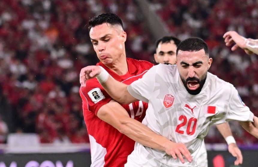 Tendangan bebas Thom Haye dari sudut sempit berhasil mengarah ke gawang. Namun, kiper Bahrain, Ebrahim Lutfalla berjibaku untuk menyelamatkan gawangnya dari kebobolan.