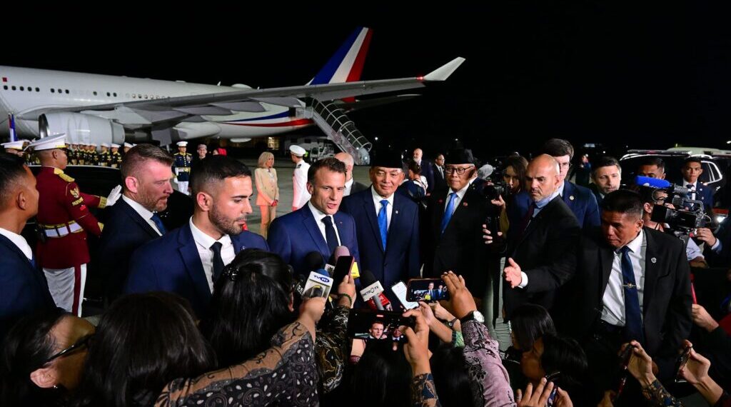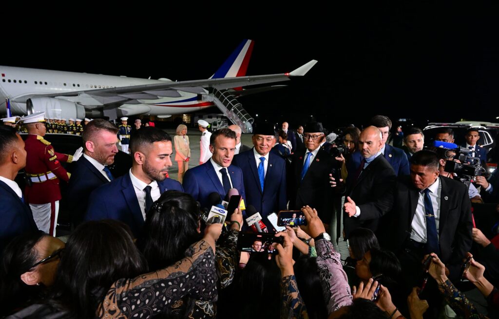 Presiden Macron diketahui telah tiba di Jakarta sekitar pukul 22.00 WIB bersama Ibu Negara Brigitte Macron dan delegasi resmi. Kedatangan mereka disambut hangat dalam upacara kehormatan dan turut dimeriahkan dengan penampilan Tari Nandak Ajer sebagai simbol sambutan budaya khas Indonesia.