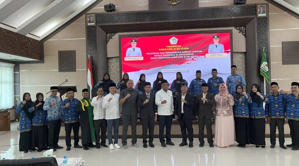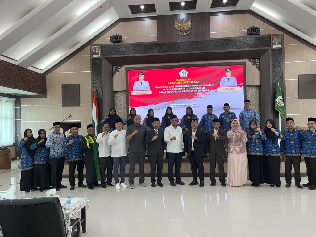 LHOKSUKON — Bupati Aceh Utara, H. Ismail A. Jalil, SE, MM, atau yang akrab disapa Ayahwa melantik dan mengambil sumpah sejumlah Kepala Puskesmas di lingkungan Dinas Kesehatan Kabupaten Aceh Utara pada hari Jumat, 19 September 2025 di Aula Setdakab.
