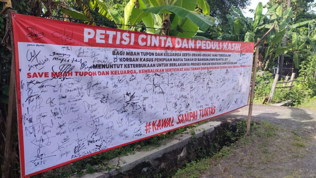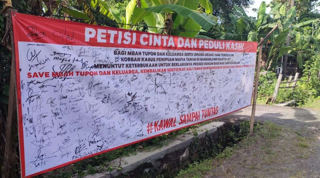 Diberitakan sebelumnya, nasib tragis menimpa Tupon (68) warga Dusun Ngentak, Bangunjiwo, Kasihan, Bantul, yang terancam kehilangan ribuan meter lahan miliknya. Tupon diduga ditipu oleh mafia tanah yang memanfaatkan kondisinya yang buta huruf.