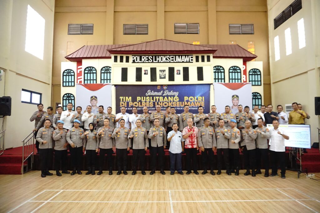 Kegiatan ini turut dihadiri oleh Wakapolres Langsa, pejabat utama Polres Lhokseumawe dan Polres Langsa, serta peserta penelitian yang menjadi objek kajian dari kedua polres tersebut.