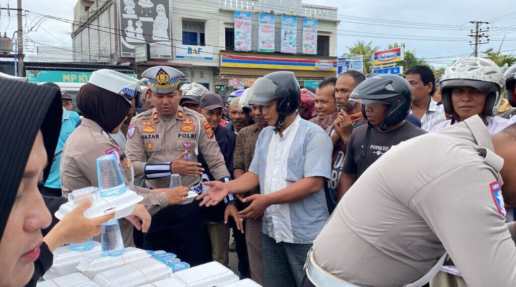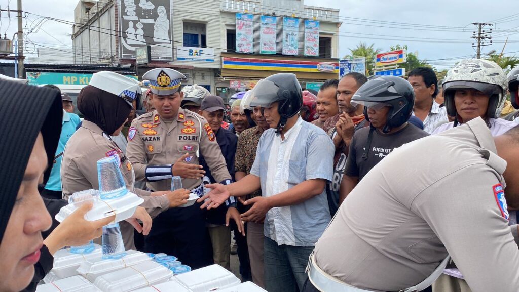 Lhokseumawe – Menyemarakkan semangat kepedulian dan kebersamaan di hari yang penuh berkah, Satuan Lalu Lintas (Satlantas) Polres Lhokseumawe melaksanakan kegiatan Jumat Barokah dengan membagikan sejumlah makanan kepada masyarakat yang membutuhkan, Jumat (11/4/2025).