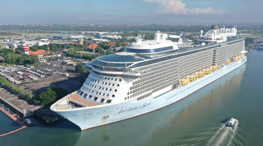 Kapal Jumbo Anthem of the Seas milik Royal Caribbean Cruise Lines ini sukses bersandar di Pelabuhan Gilimas hari Jumat, 28 November 2024 pukul 06.00 wita. Proses penyandaran kapal raksasa ini melibatkan jasa pemanduan dan penundaan melalui 2 kapal tunda milik Pelindo.