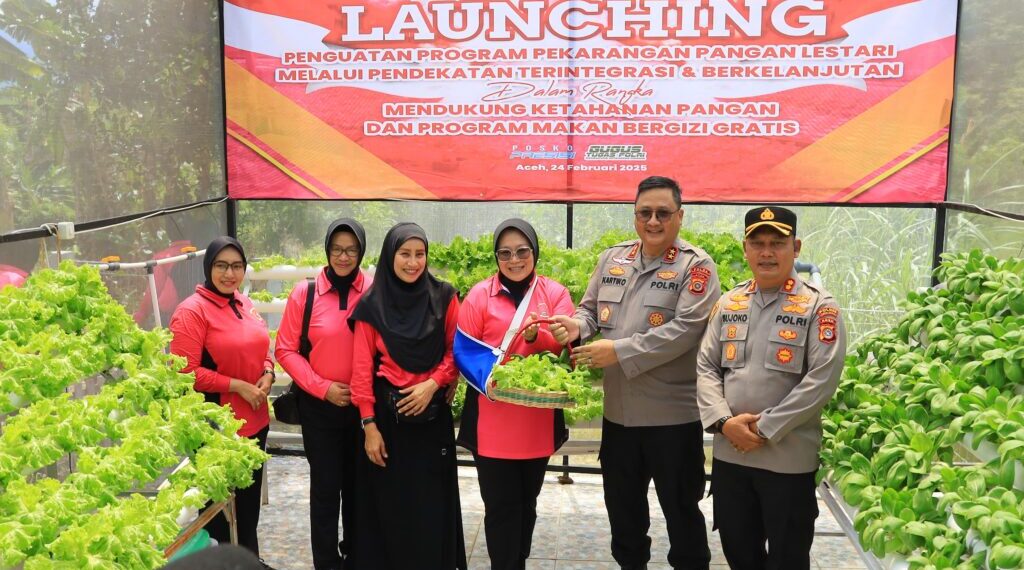 Jantho – Kapolda Aceh Irjen Dr. Achmad Kartiko, didampingi Ketua Bhayangkari Daerah Aceh, Ny. Rani Achmad Kartiko, menghadiri secara virtual launching penguatan program Pekarangan Pangan Lestari (P2L) serentak di Polres Aceh Besar, Senin, 24 Februari 2025.