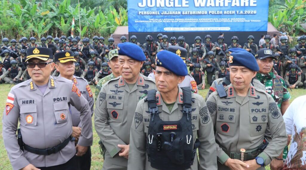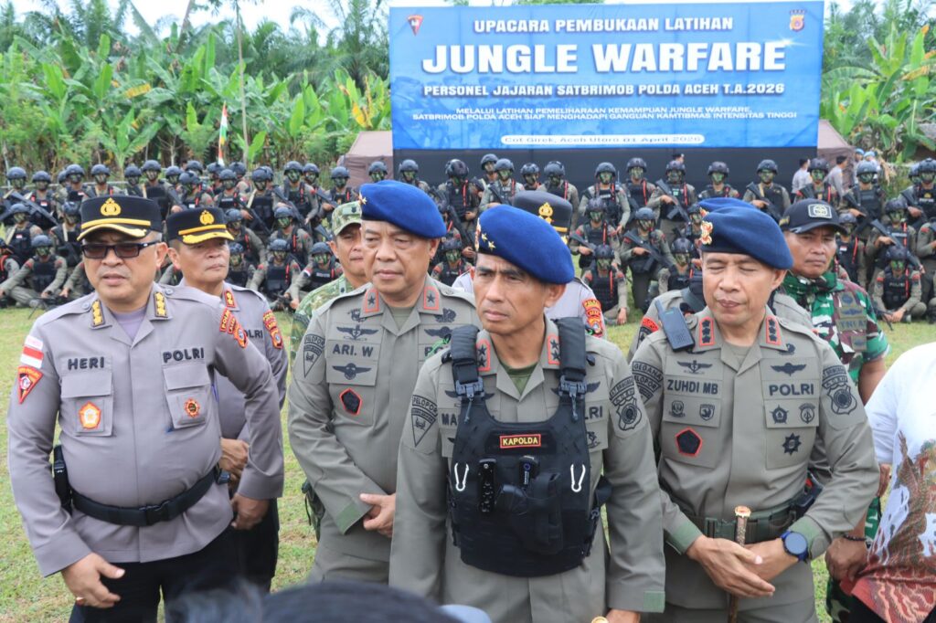 LHOKSUKON – Kepala Kepolisian Daerah Aceh Irjen. Pol. Drs. Marzuki Ali Basyah, M.M. secara resmi memimpin upacara pembukaan Pelatihan Jungle Warfare yang digelar di desa Beurandang Asan, Kecamatan Cot Girek, Kabupaten Aceh Utara. Rabu, (1/4/2026) pagi.