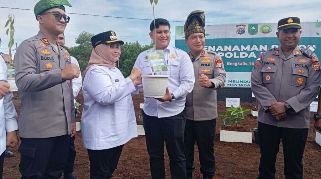 Bengkalis – Mengantisipasi potensi kebakaran hutan dan lahan (karhutla) pada musim kemarau ekstrem yang diprediksi terjadi mulai Juni 2025, Kapolda Riau Irjen Pol Dr. Herry Heryawan, S.I.K, M.H bersama Bupati Bengkalis Kasmarni melakukan penanaman pohon geronggang di Kampung Tangguh, Kabupaten Bengkalis, Rabu (16/4/2025).