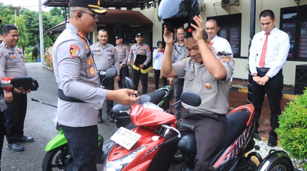 ACEH UTARA — Kepala Kepolisian Resor Aceh Utara AKBP Nanang Indra Bakti, S.H., S.I.K. menyerahkan bantuan sepeda motor roda tiga, beserta Surat Tanda Nomor Kendaraan (STNK) kepada penyandang disabilitas di halaman depan loby mako Polres setempat, Senin, (5/5/2025) pagi.