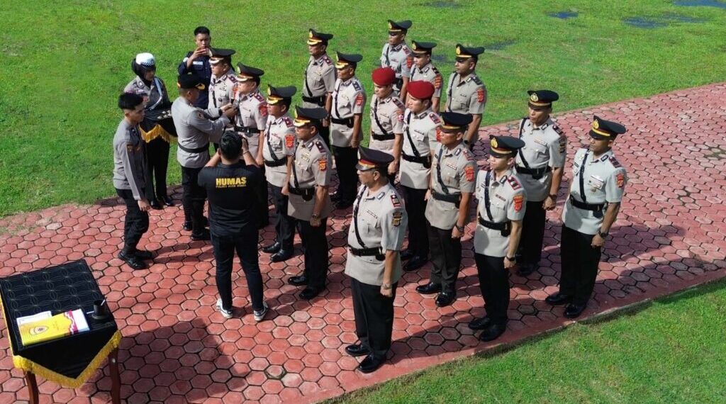 ACEH UTARA– Kapolres Aceh Utara AKBP Trie Aprianto, S.H., M.H. memimpin upacara serah terima sembilan jabatan utama di jajaran Polres Aceh Utara, upacara di Lapangan Tri Brata Mapolres setempat, Senin (27/10/2025).