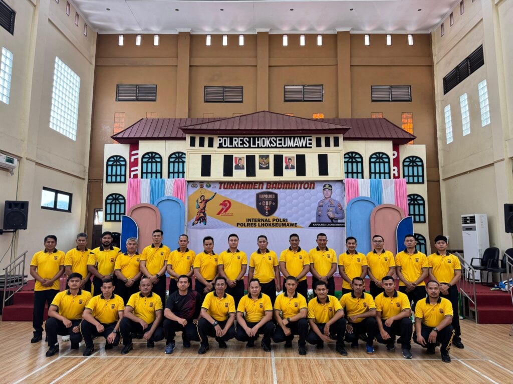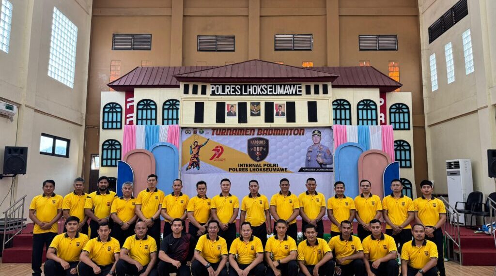 Lhokseumawe — Dalam rangka memeriahkan Hari Bhayangkara ke-79, Polres Lhokseumawe menggelar Turnamen Badminton Internal yang dibuka langsung oleh Kapolres Lhokseumawe AKBP Dr. Ahzan, S.H., S.I.K., M.S.M., M.H di Gedung Serbaguna Polres Lhokseumawe, Jumat (13/6/2025) pagi.
