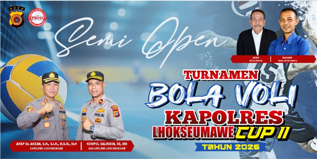 LHOKSEUMAWE – Turnamen voli bergengsi Kapolres Lhokseumawe Cup II resmi bergulir malam ini, Jumat (3/4/2026). Laga pembuka langsung menyajikan duel panas antara Yanco VC Muara Satu Kota Lhokseumawe melawan tuan rumah Meurah Mulia VC Aceh Utara.