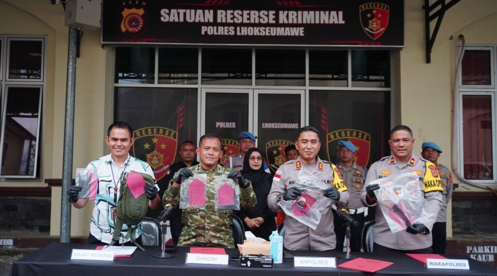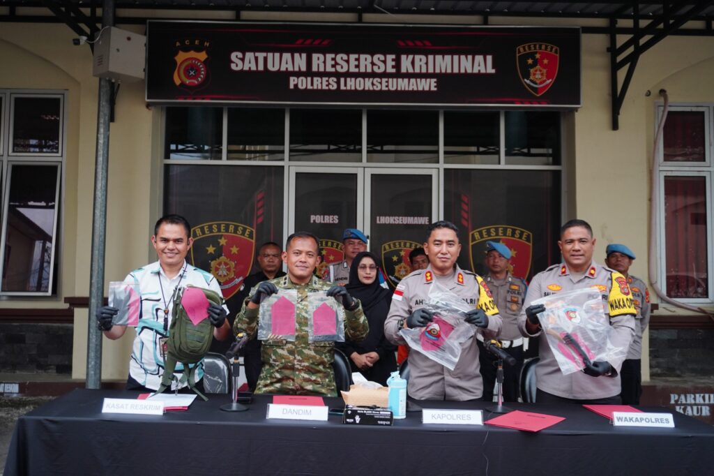 Konferensi pers tersebut turut dihadiri Wakapolres Lhokseumawe Kompol Salmudin, S.E., M.M., AKP Dr. Bustani, S.H., M.H., MSM, Kasi Humas Polres Lhokseumawe Salman Alfarasi, serta sejumlah awak media.
