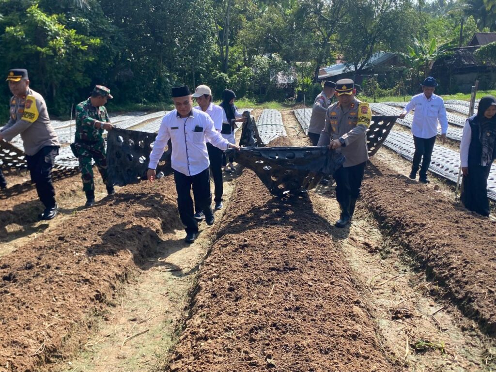 Pada momen tersebut, Kapolres Lhokseumawe bersama Muspida turun langsung ke lahan untuk memasang mulsa plastik sebagai persiapan penanaman. Turut hadir Wakapolres Lhokseumawe Kompol Dedi Darwinsyah, MM., Asisten Perekonomian dan Pembangunan Setdako Lhokseumawe Ir. Tgk. H. Anwar Ali, ST, MT., Camat Muara Dua Rudi Hidayat, S.STP., serta Ketua Kelompok Tani Udep Beusare, M. Yakob, dan masyarakat sekitar.