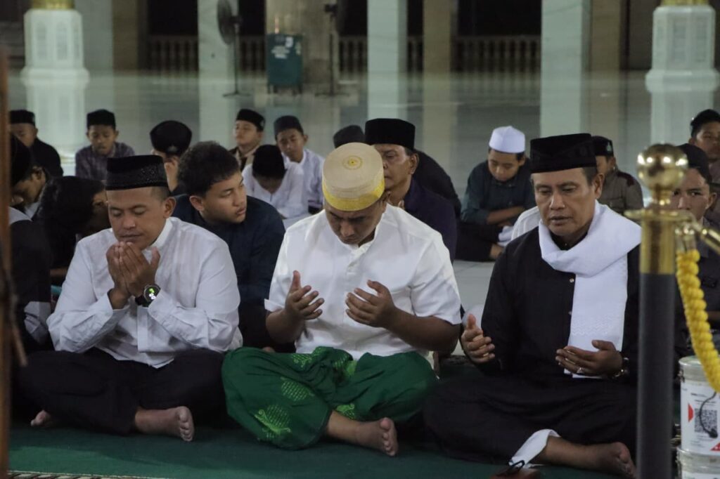 Lhokseumawe – Kapolres Lhokseumawe, AKBP Dr. Ahzan, S.H., S.I.K., M.S.M., M.H., bersama ratusan jemaah mengikuti salat gerhana di Masjid Agung Islamic Center Kota Lhokseumawe, Sabtu (07/09/2025).