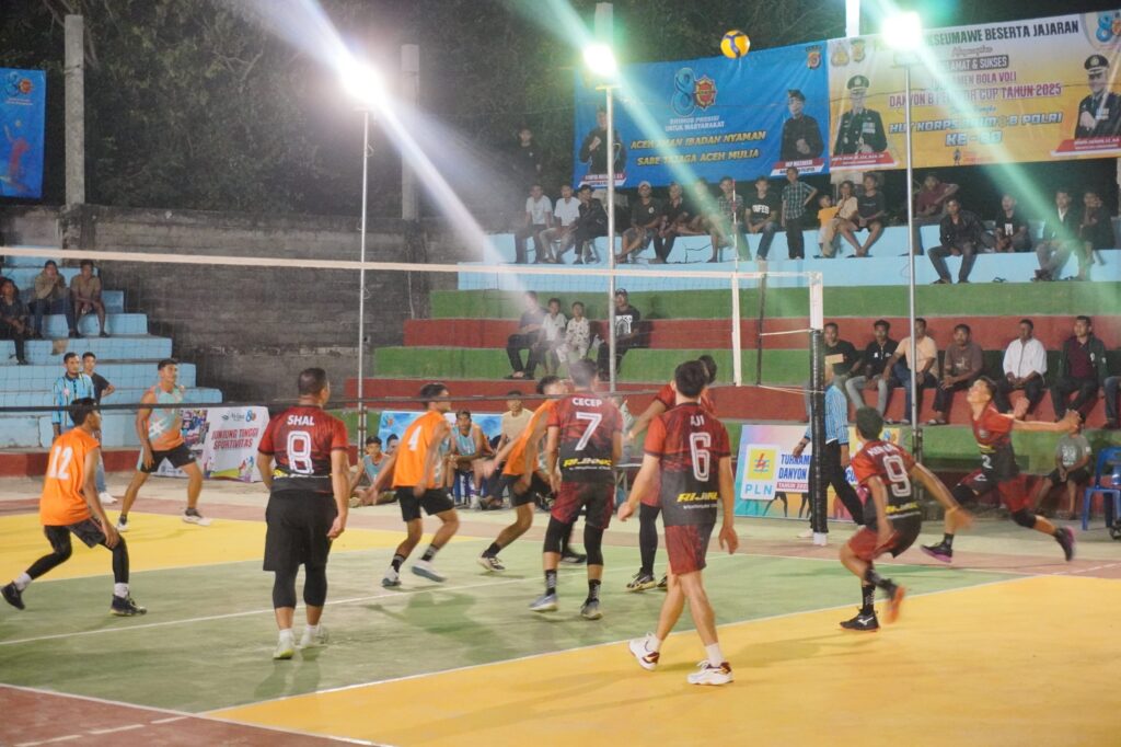 Usai pembukaan, perhatian publik tertuju pada laga perdana tim Rijang VC Polres Lhokseumawe berhadapan dengan Siwah Blang VC. Dari pinggir lapangan, Kapolres ikut menyaksikan jalannya pertandingan. Kehadirannya memberi dorongan moral bagi personel yang berlaga, yang kemudian terwujud melalui permainan solid, penguasaan tempo, dan kemenangan meyakinkan 3–0.